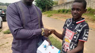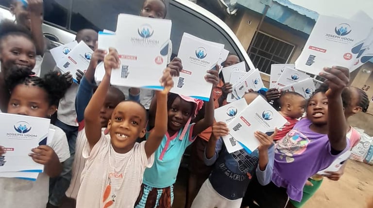 As we continue on our quest to support and secure a brighter academic excellence among children in Nigeria, here in Abuja the chairman and founder of JOSEPH UDOM FOUNDATION Mr. Joseph Harrison Udom present more books and scholarships to beneficiaries pupils on the streets of Abuja.